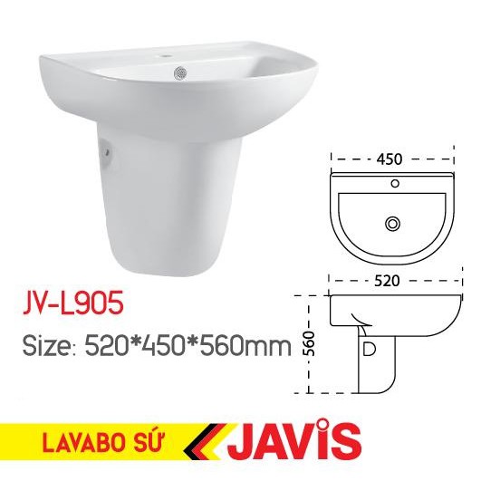 Lavabo sứ JAVIS JV-L905, công nghệ men Nano, chống bám bẩn và diệt khuẩn, siêu bền
